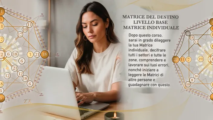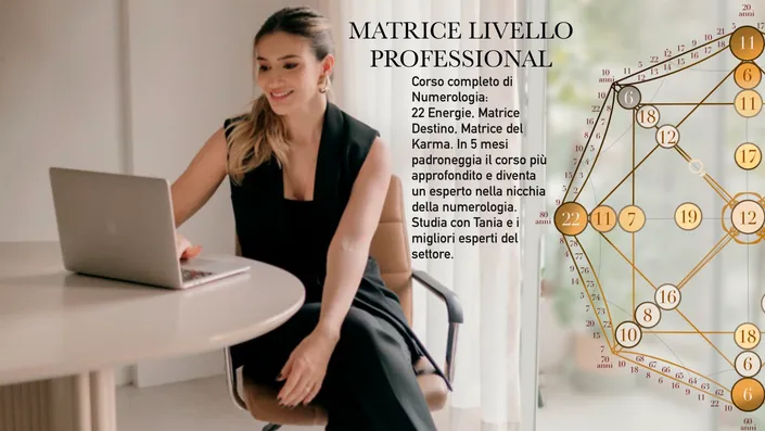 Numerologia Matrice del Destino e Matrice del Karma: la numerologia più potente di questo tempo. Dal corso base al professionista in 5 mesi per lavorare sul proprio subconscio ed eliminare i blocchi karmici. Libera il tuo potenziale, inizia ad aiutare le persone e diventa economicamente indipendente. Ottieni una nuova professione e la possibilità di lavorare da ogni angolo del mondo, essendo libero nel gestire il tuo tempo.